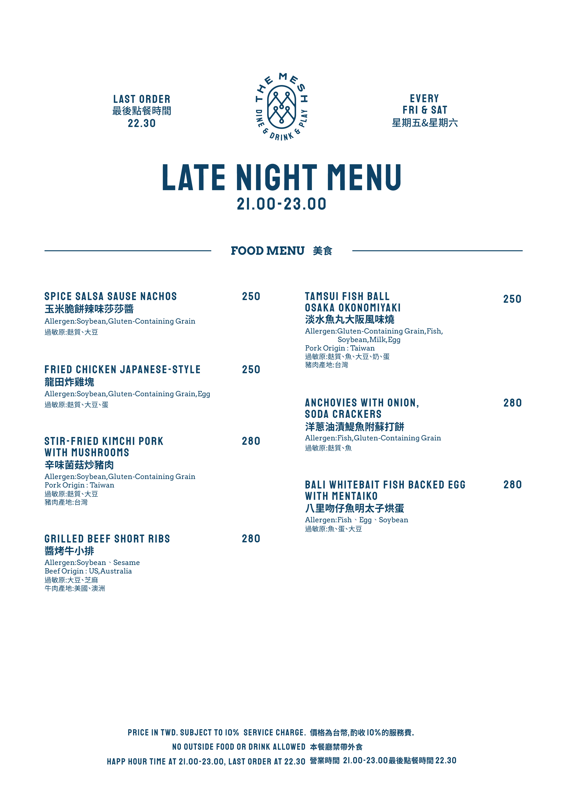 ⏰每週五、六 21:00~23:00 最後供應時間:22:30